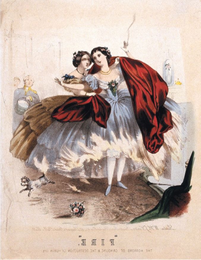 У балов был свой этикет и своя мода. Пышные платья, ставшие особенно популярными в 40-е годы XIX века, были красивы, но и… небезвредны. Эти огромные кринолины занимали так много пространства, что их края порой попадали в камины. Всего миг – и платье загоралось.