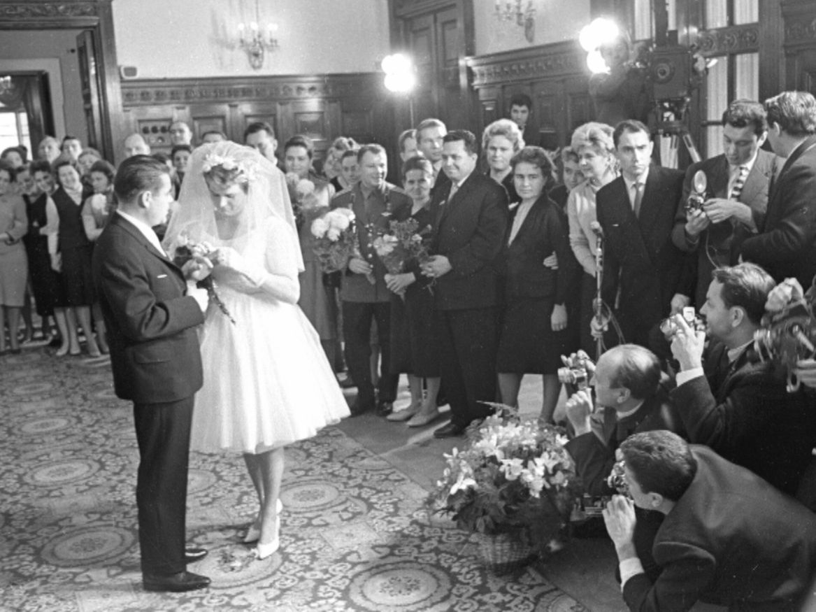 Потом из «Чайки» выпорхнула девушка в белом платье и фате, что заставило прохожих изумиться еще больше: это была Валентина Терешкова. В полдень того самого дня она должна была стать женой Андрияна Николаева. И брак прогремел на весь мир.
