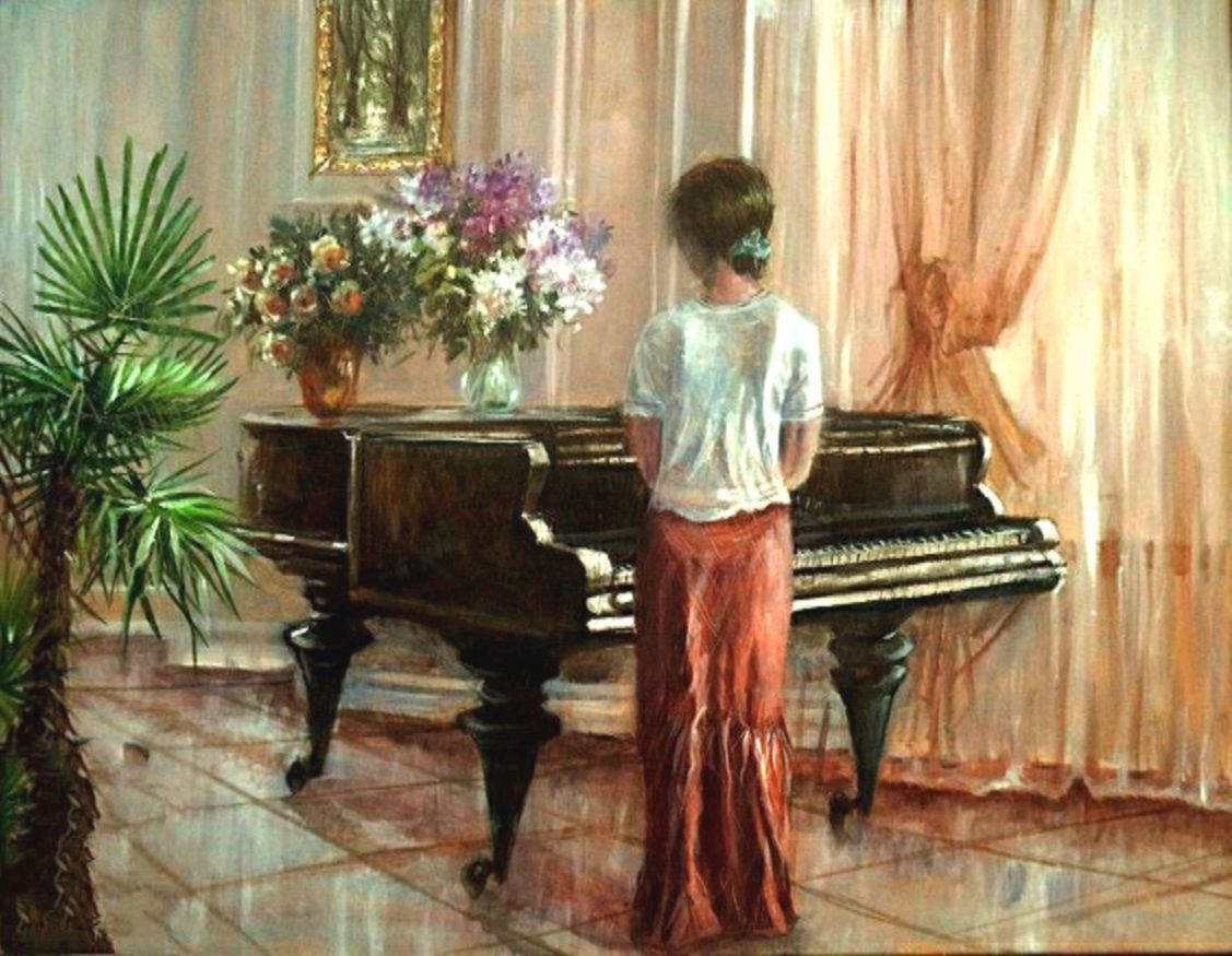 Очаровательная маленькая девочка во «взрослом» женском платье, с высокой прической, с сережками в ушах и колье на шее сидела за роялем на сцене и музицировала. Зал рукоплескал юной артистке.