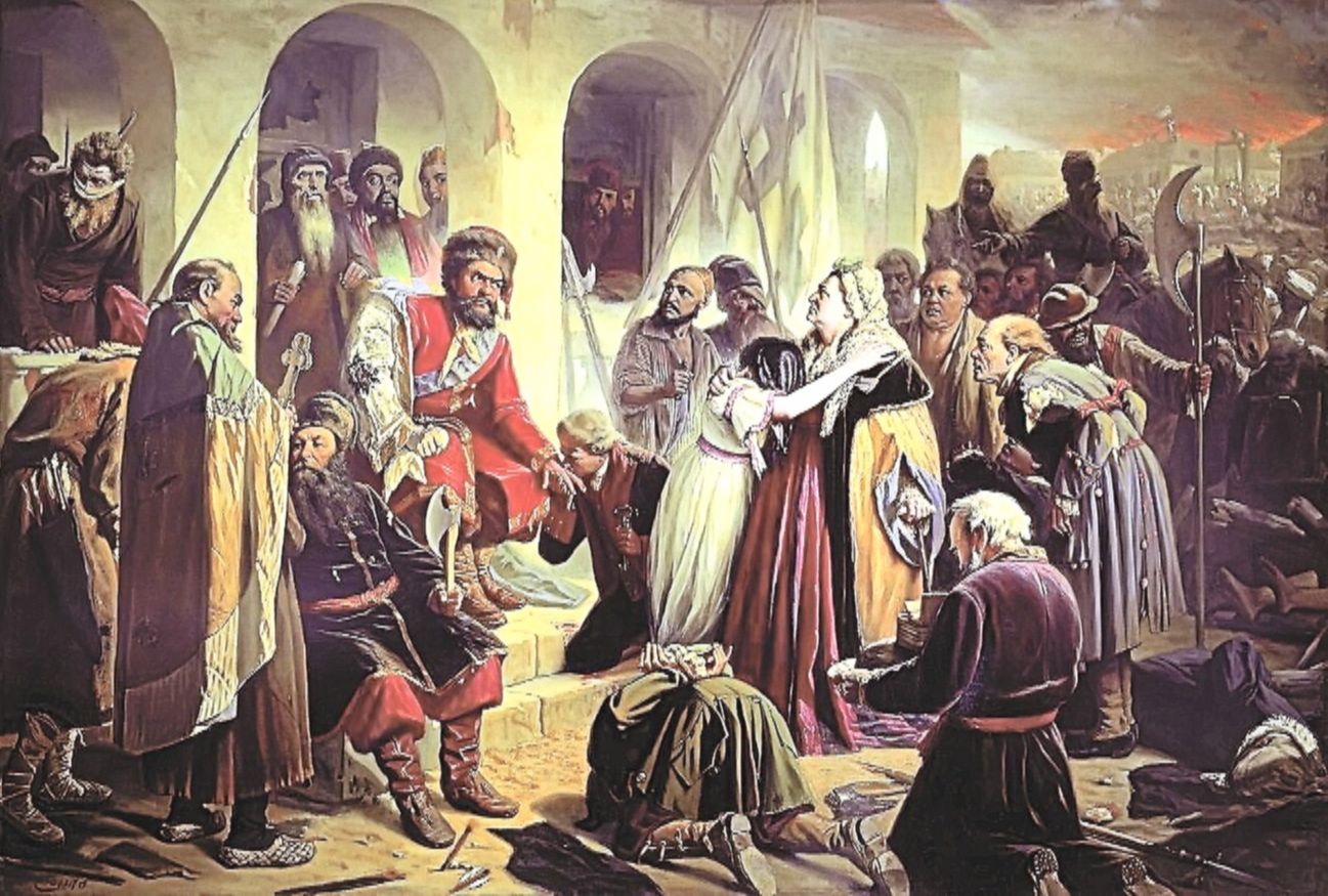 Как бы то ни было, Татьяна и её малолетний брат оказались в обозе предводителя восставших. Вскоре пленная дворянка была вынуждена стать наложницей лиходея.