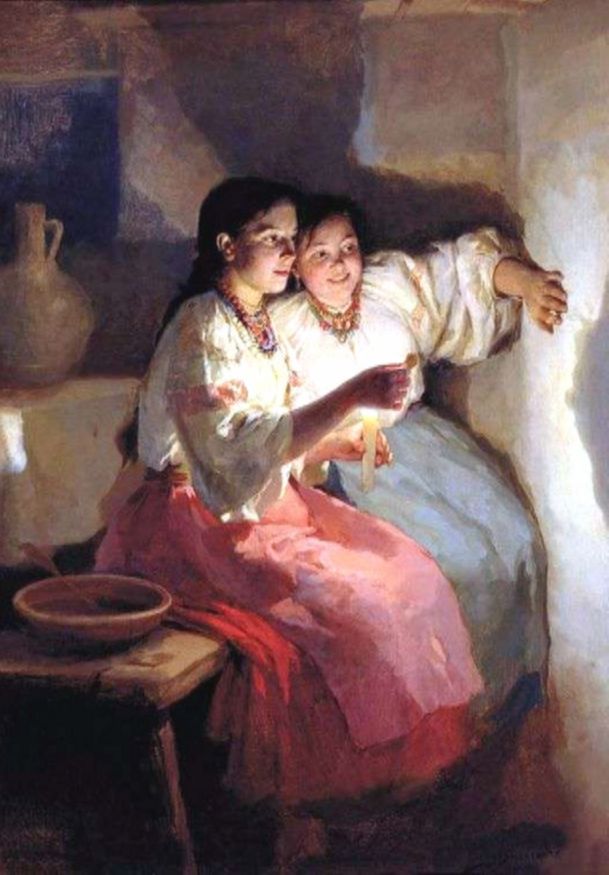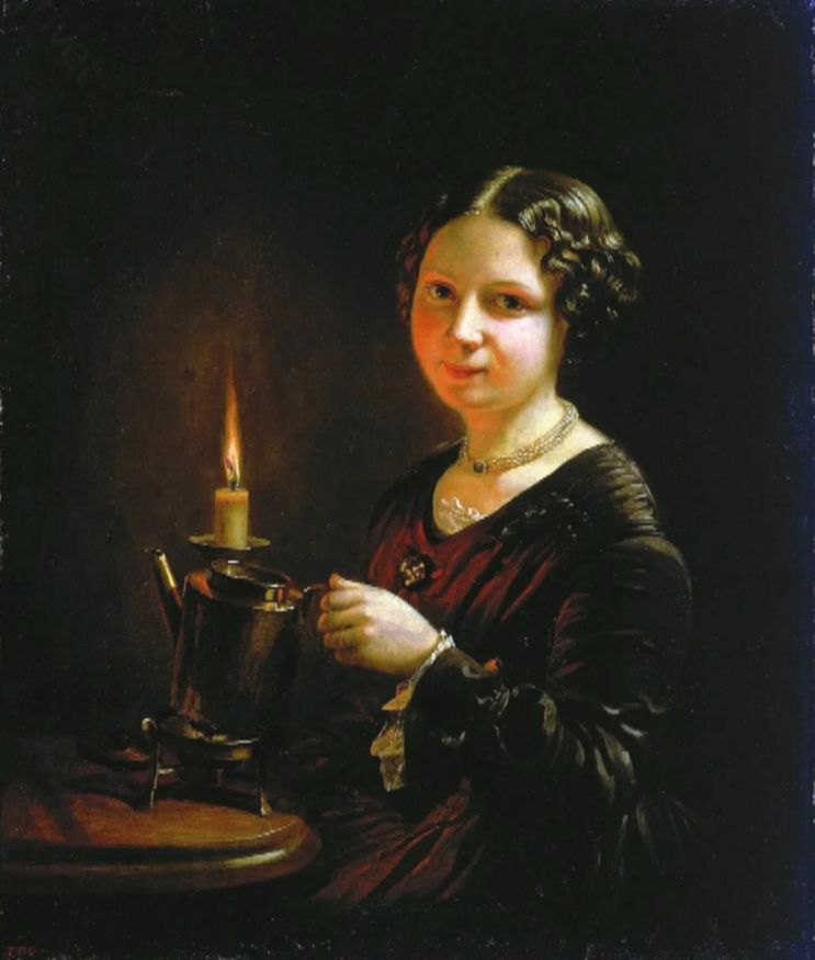 А русские художники изображали свечи и в сценах гадания. Там тоже зажигают огонек не просто так, а чтобы заглянуть в будущее.