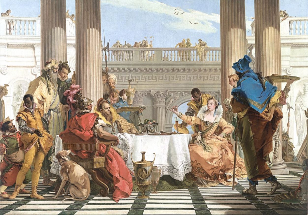Среди зрителей были и Петрарка, и поэт Чосер, и историк Жан Фруассар. А там ещё было на что посмотреть. Торжественный обед длился несколько дней и состоял из восемнадцати перемен блюд. На столы подавали кабанов и форель, телят и павлинов, каплунов и куропаток, жареных козлят и оленину, а ещё лебедей, уток, сыры, фрукты и крупную вишню особого сорта «лев».