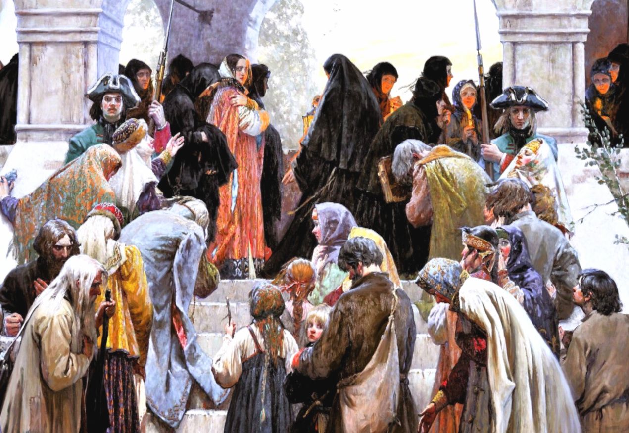— Собирайся, Дуня, поедешь в монастырь! Жить с тобой как с женой я более не буду, — жестко сказал Петр. — А как же сынишка Алёшенька без меня будет? — закричала Евдокия. — Ничего, и без тебя воспитаем царевича, — усмехнулся царь. Забилась в рыданиях царица, заметалась по терему. Не хотелось ей в 29 лет становиться монахиней. Да разве поспоришь с царской волей! Вскоре ее силой увезли в монастырь.