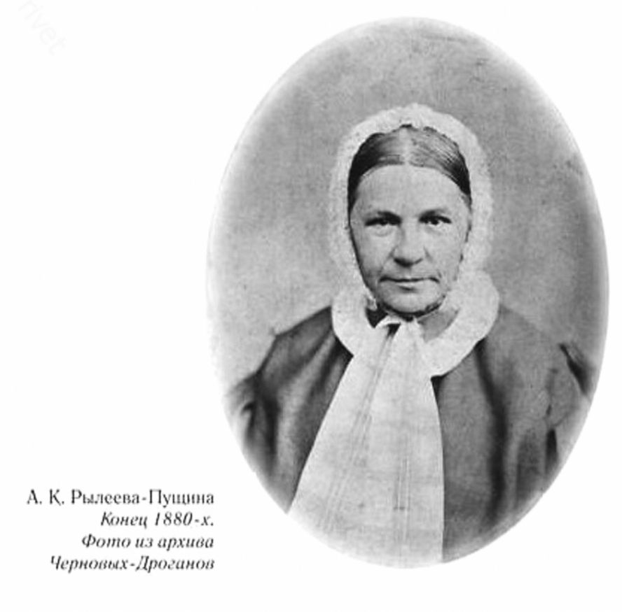 С Анной, своей золовкой, она практически не общалась – вдове нашептали, что девушка может оспорить у нее права на наследство и не стремилась ввести ее в свой круг. Жизнь золовки в дальнейшем проходила тяжело. Она скончалась 3 декабря 1858 года в крошечной комнатушке, в простой избе дворника. До последнего вздоха Анна Рылеева хранила стихи своего брата.