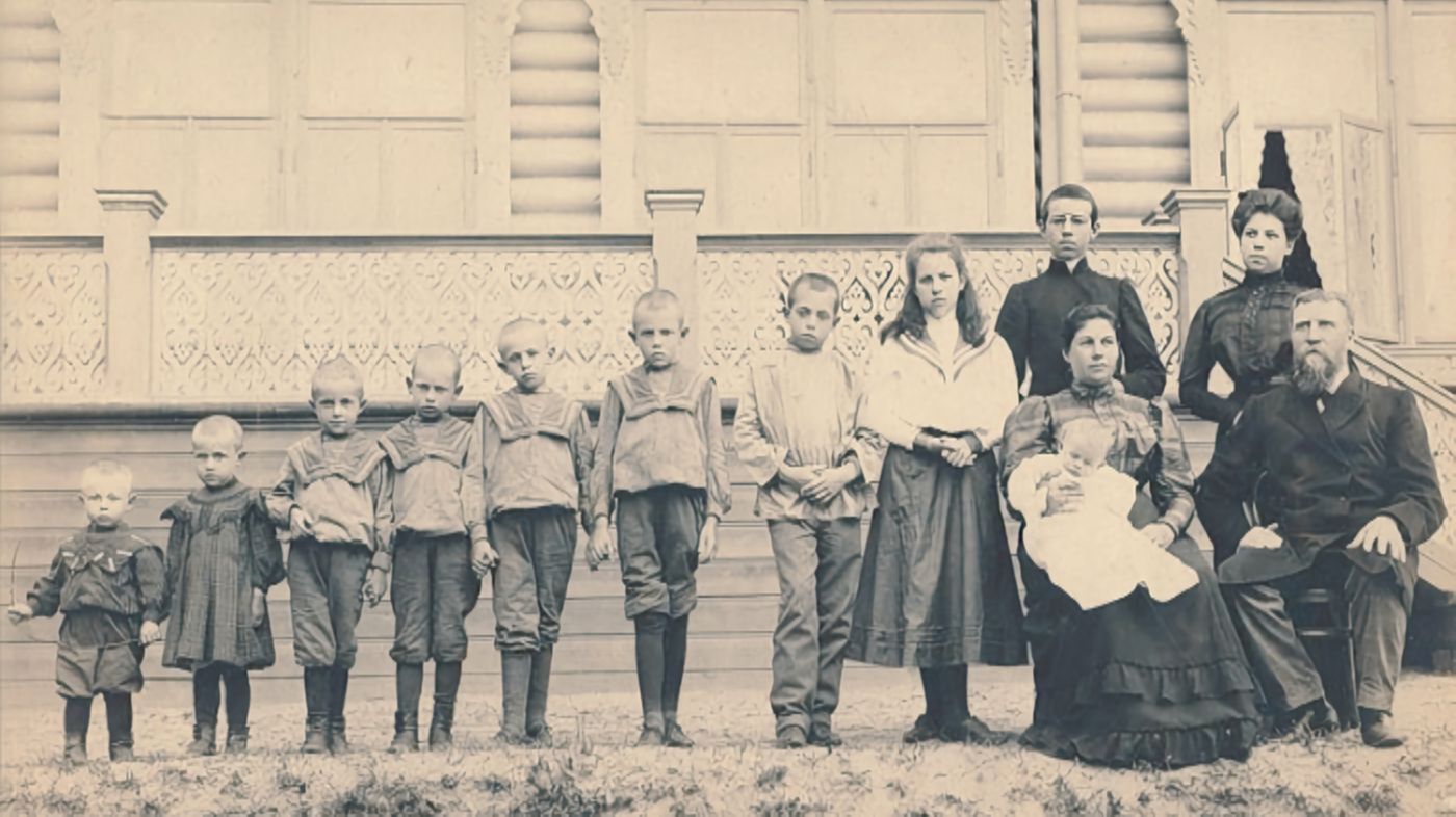 Это стало началом невероятной семейной истории. Агриппина рожала с завидной регулярностью: десять сыновей и двенадцать дочерей появились на свет один за другим в течение 28 лет. Последнего своего ребенка она родила, когда ей уже стукнуло солидные 46 лет. Это ведь сейчас такой возраст кажется не таким уж страшным — но то ли дело было в 19 веке, когда материнская смертность составляла 500–1000 случаев на 100 000 родов. Каждые роды она переживала с философским спокойствием, помня слова из Евангелия, которые позже велела высечь на своей могиле: