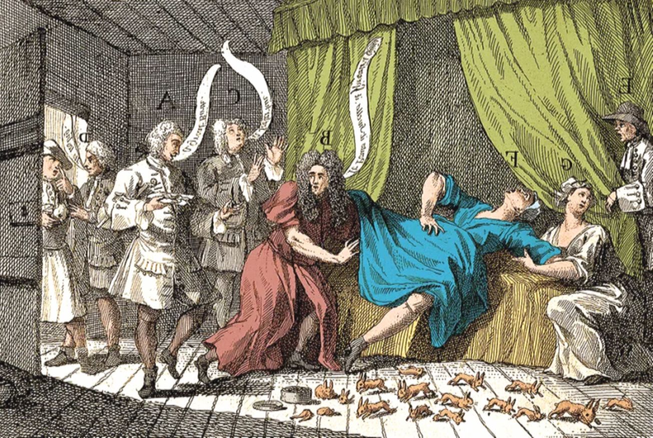 Этот человек, по фамилии Элерс, предположил: Мэри удерживала привязанного кролика у себя на теле, а в нужный момент выталкивала его. И люди верили в мистификацию! Но это лишь трюк! Позвали королевского акушера Ричарда Мэнингена, который тоже засомневался, что Мэри была беременна… Тем не менее, до выяснения обстоятельств, миссис Тофт разместили в удобном поместье Лейси на окраине Лондона. С нее было велено не спускать глаз. А к поместью потянулись люди!
