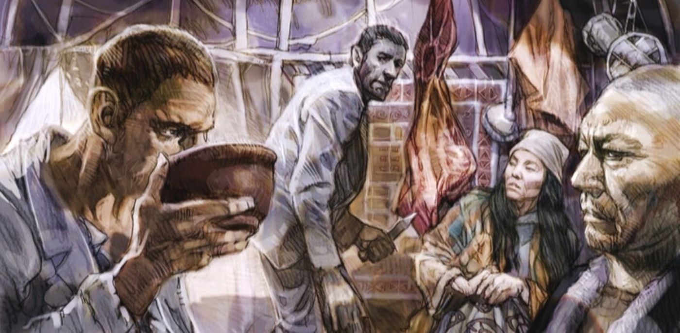 Тэнно и Жданок, бежавшие осенью, планировали быстро проехать степь на машине, однако попали в ловушку. Вот уже четвертый день они шли без воды по сухим солончакам, рассасывая глюкозу в таблетках, которую удалось взять с собой в портфеле и жевали сухие макароны.