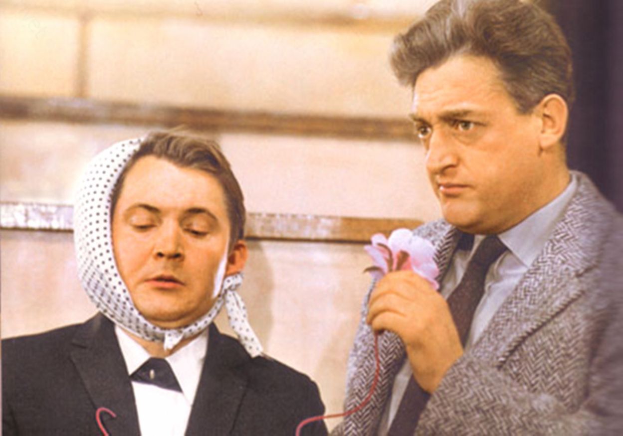 Уж кто-кто, а Гайдай славился своим скрупулезным подходом к выбору актеров. Обычно, решив, кого будет снимать, он делал фотопробы и раскладывал их как пасьянс – смотрел, кто с кем монтируется. Мог это делать часами… Так вот видно, что дуэт актера театра Сатиры Владимира Раутбарта и Виктора Павлова, сыгравших профессора и сдающего экзамен студента, просто идеален по степени комичности.