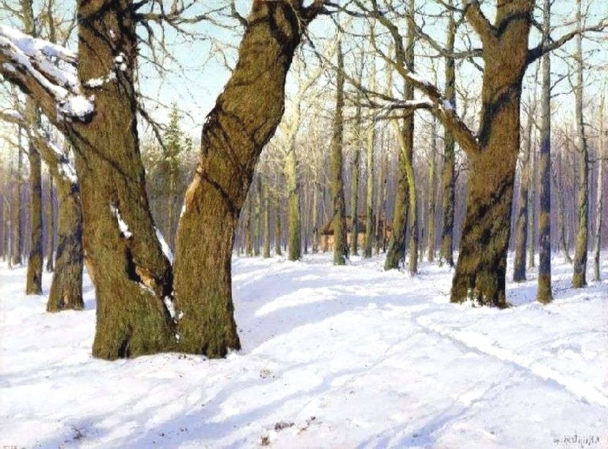Художнику удалось передать внутреннюю жизнь природы во всем ее богатстве: величественные деревья, отбрасывающие широкие тени, рыхлость и блеск снега, лесную тишину и строгий покой, и озаряющий это великолепие солнечный свет — предвестник будущей весны.